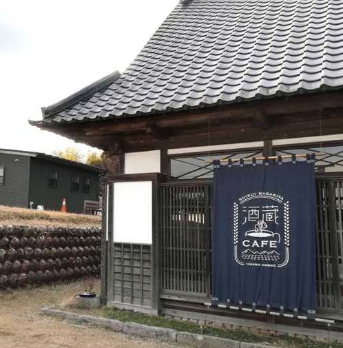 その手前左側に「酒蔵cafe」の日除けのれんが掲げてある、かなり古い建物が歴史をも感じさせる。